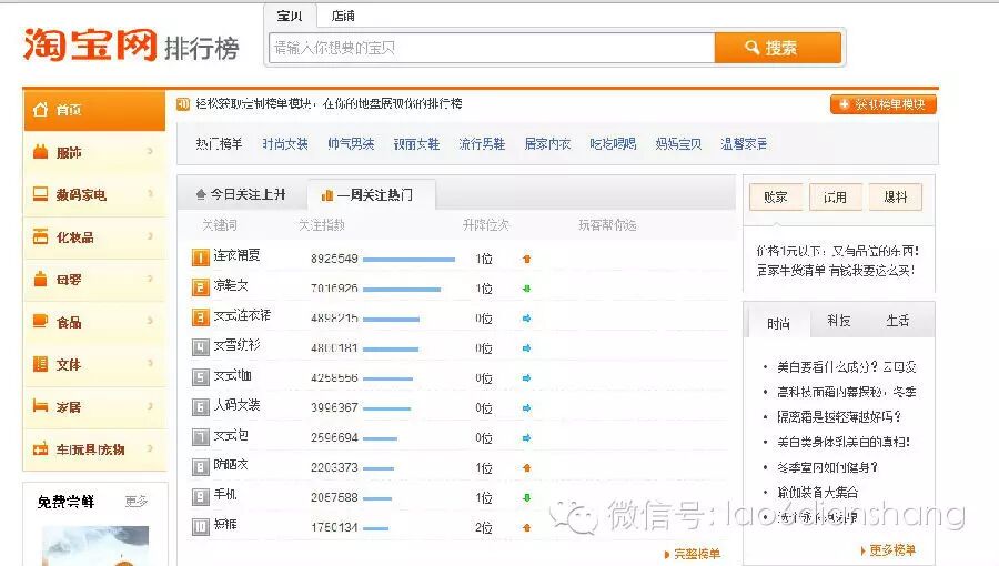 淘宝网排行榜:top.taobao.com