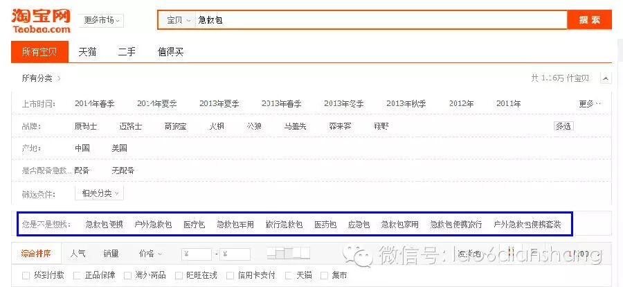 但是小类目,4500指数以下的关键词,下架时间权重就不会起作用,所以说,这个时候,热词,更多就只有行业词,类目词了:例如急救包,急救包的第二热词不足支撑大的流量,