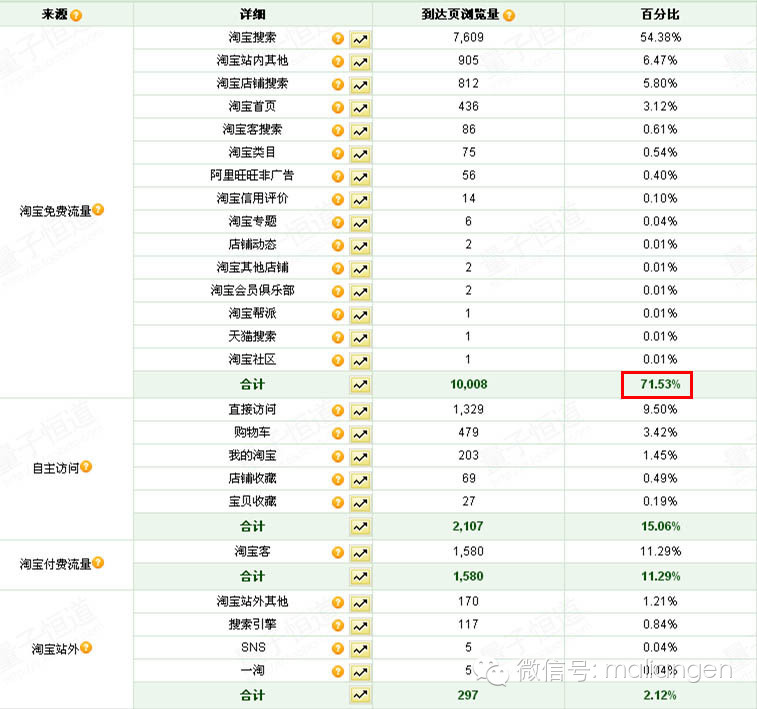 首先了解店铺流量结构。一个健康淘宝店铺,免费流量应该占60%以上。看下图免费流量占70%以上,说明还是不错的。图片可以做个参考。